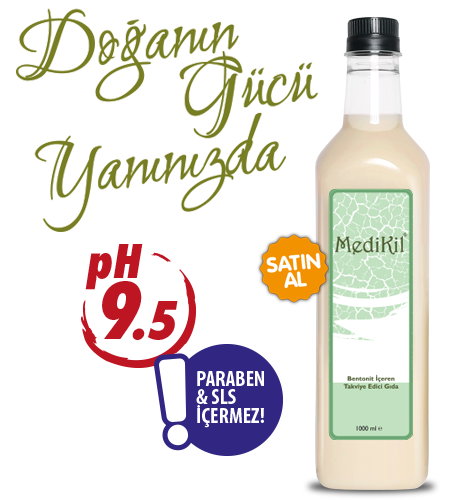 BENTONİT İÇEREN TAKVİYE EDİCİ GIDA Tavsiye Edilen Günlük Alım Dozu : Sabah ve akşam yemeklerden 1 saat önce veya yemeklerden 2 saat sonra, günde 2 kere 60 ml (5 çorba kaşığı) alınması tavsiye edilir. Tavsiye edilen günlük porsiyonu aşmayınız. UYARI: İlaç Değildir. |