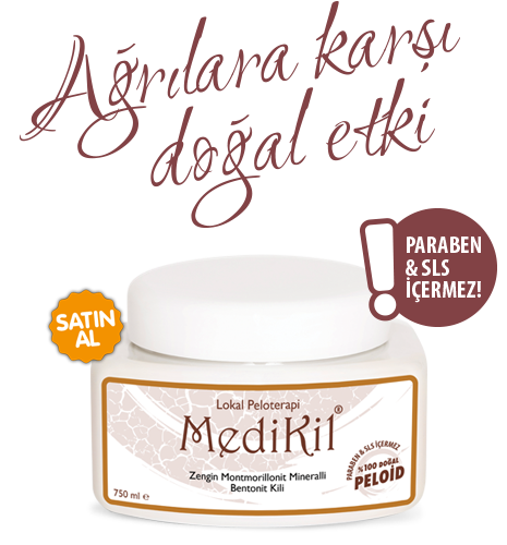 LOKAL PELOTERAPİ Vücutta sorunlu olan bölgeye kalın (1cm) lapa olarak uygulanır. Uygulama yapılan yer streç film ile sarılarak ürünü kurumaması sağlanır ve minimum 2 saat bu şekilde bekletilir. Yoğun terapilerde gece boyu bekletilebilir. İyi sonuç almak için, ilk bir hafta her gün, sonraki dönemde haftada 2 veya 3 kez uygulanması tavsiye edilir. |